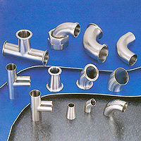 SMS Standard Pipe Line: 90 deg. 1.5D Short Elbow, 90 deg. 1D Long Elbow, 45 deg. 1D Long Elbow, Equal Tee, Reducing Tee, Pull Tee, Equal Cross, Reducing Cross, Pull Corss.